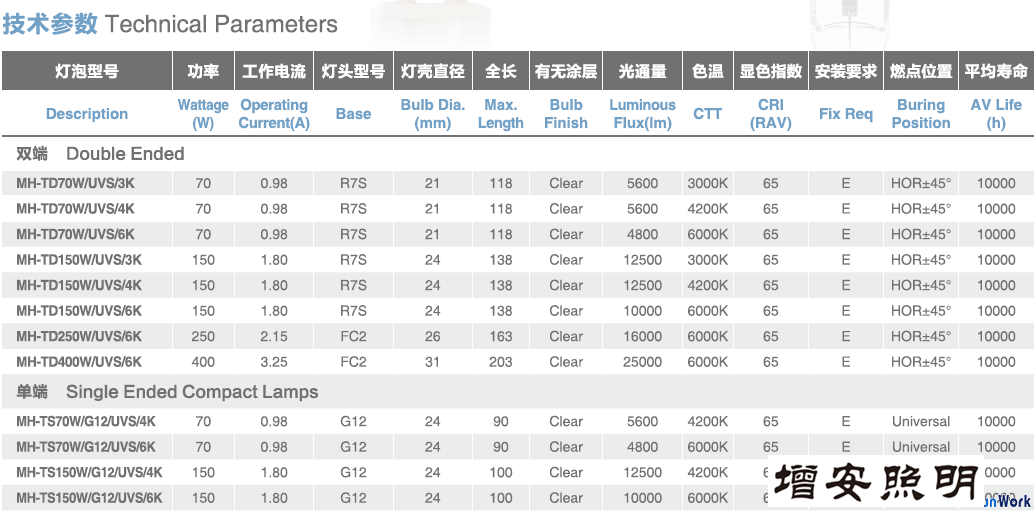 燈具G12單端金鹵燈泡質(zhì)量最好價格最低,就買型號詳細介紹