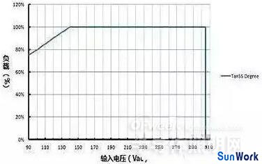 一般情況下,LED 驅(qū)動器的標稱功率是指額定環(huán)境、額定電壓情況下測得的數(shù)據(jù)。考慮到不同客戶會有不同的應(yīng)用,多數(shù) LED 驅(qū)動器供應(yīng)商會在自家的產(chǎn)品規(guī)格書上提供功率降額曲線(常見的有負載 vs 環(huán)境溫度降額曲線及負載 vs 輸入電壓降額曲線)。